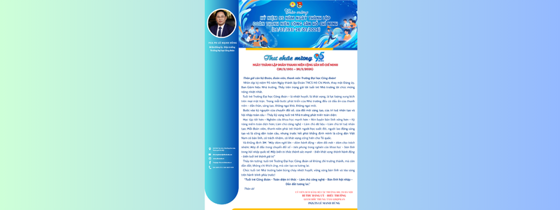 THƯ CHÚC MỪNG KỶ NIỆM 95 NĂM NGÀY THÀNH LẬP ĐOÀN THANH NIÊN CỘNG SẢN HỒ CHÍ MINH CỦA HIỆU TRƯỞNG TRƯỜNG ĐẠI HỌC CÔNG ĐOÀN