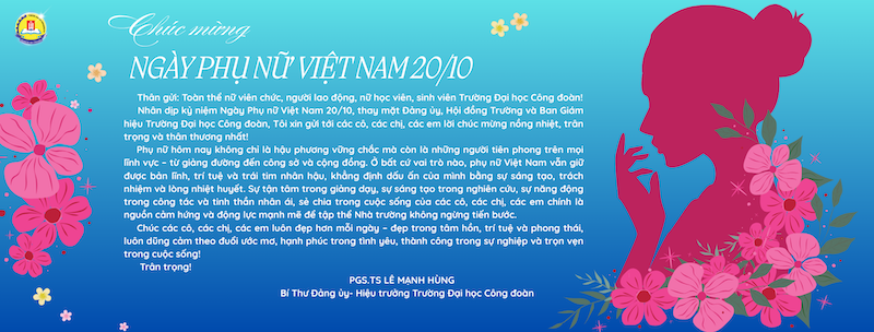 THIỆP CHÚC MỪNG NGÀY PHỤ NỮ VIỆT NAM 20 THÁNG 10 CỦA HIỆU TRƯỞNG TRƯỜNG ĐẠI HỌC CÔNG ĐOÀN