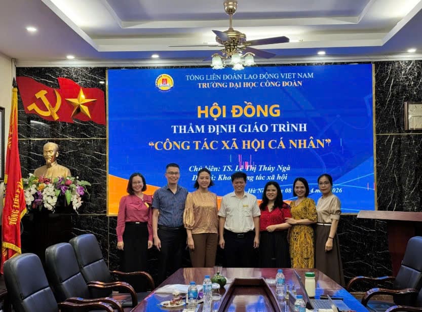 Chiều ngày 08/4/2026, Trường Đại học Công đoàn đã tổ chức Hội đồng thẩm định giáo trình chuyên ngành “Công tác xã hội cá nhân” do TS. Lê Thị Thúy Ngà chủ biên. Hội đồng được thành lập nhằm đánh giá toàn diện chất lượng khoa học, giá trị thực tiễn cũng như mức độ cập nhật, phù hợp của nội dung giáo trình trong bối cảnh hiện nay. Đây là bước quan trọng góp phần bảo đảm giáo trình đáp ứng yêu cầu đào tạo, nâng cao chất lượng giảng dạy và học tập trong lĩnh vực công tác xã hội.