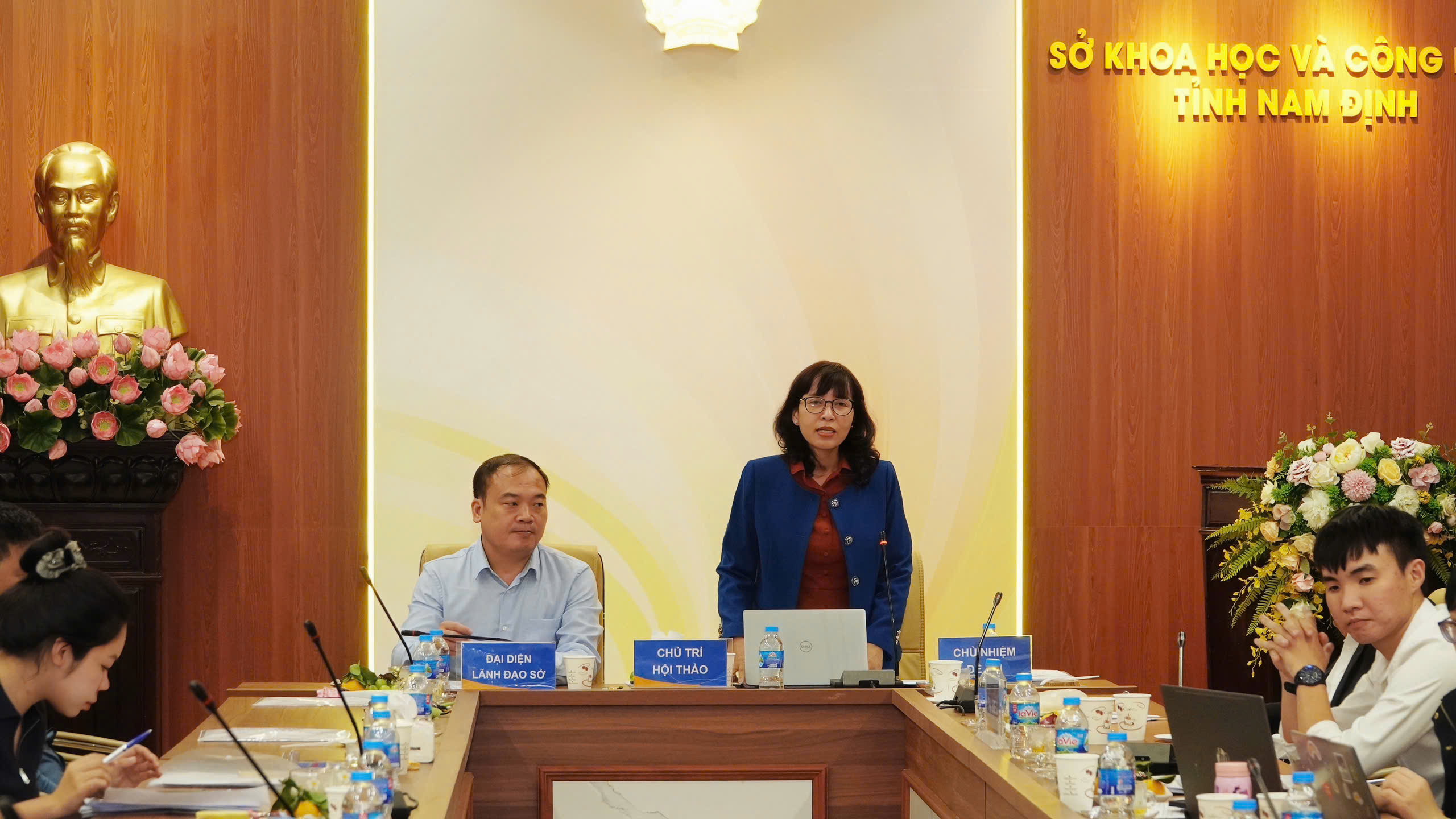 Phát biểu khai mạc Hội thảo Lãnh đạo Sở KH&CN tỉnh Ninh Bình. PGS.TS Hoàng Thị Nga, Chủ nhiệm đề tài, đã trình bày báo cáo đề dẫn Hội thảo và tổng kết Hội thảo.