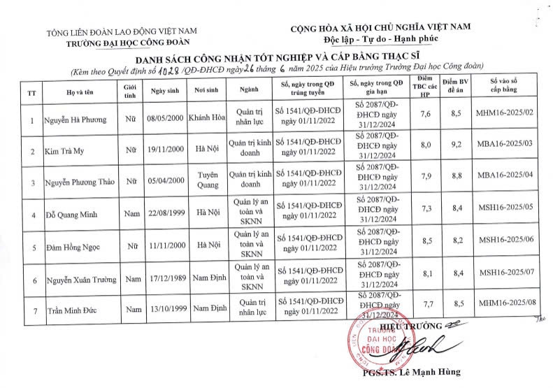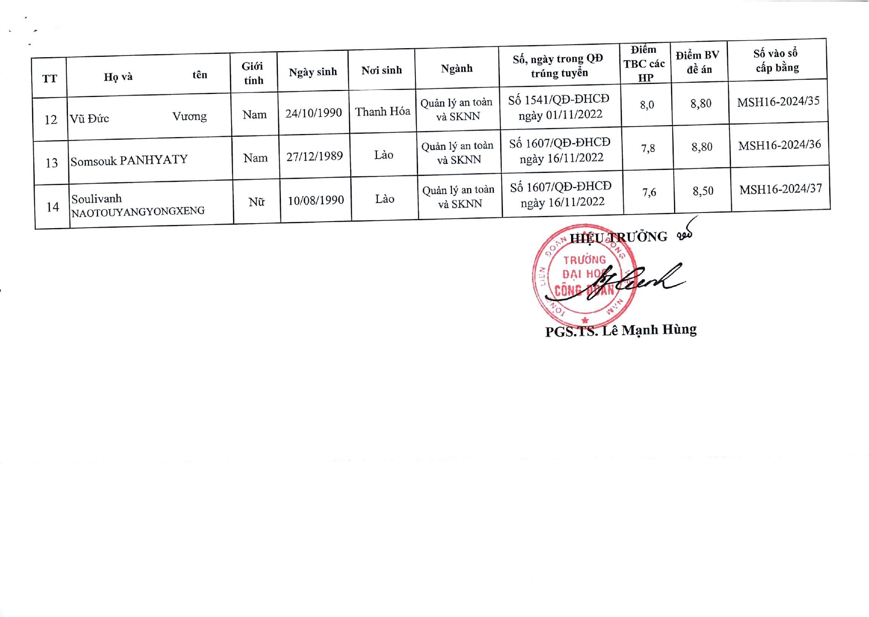 QUYẾT ĐỊNH CÔNG NHẬN VÀ CẤP BẰNG THẠC SĨ CH16