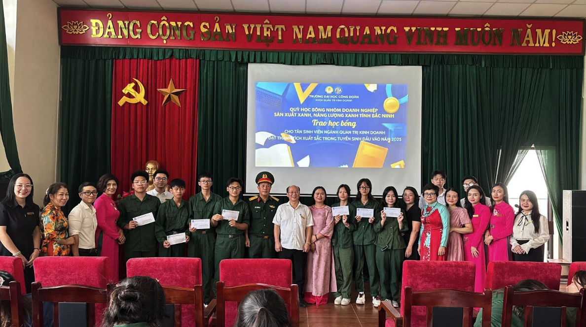 Đặc biệt, nhằm khích lệ tinh thần học tập của sinh viên, Quỹ học bổng nhóm doanh nghiệp sản xuất xanh, năng lượng xanh tỉnh Bắc Ninh đã trao tặng 07 suất học bổng cho các tân sinh viên ngành Quản trị kinh doanh đạt thành tích xuất sắc trong kỳ tuyển sinh năm 2025.