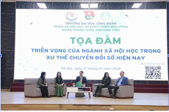Ngày 31/01/2026, tại Trường Đại học Công đoàn, Khoa Xã hội học và Phát triển bền vững đã phối hợp với Đoàn Thanh niên - Hội sinh viên tổ chức Tọa đàm "Triển vọng của ngành Xã hội học trong xu thế chuyển đổi số hiện nay". Tọa đàm là không gian trao đổi học thuật và định hướng nghề nghiệp dành cho sinh viên Khoa Xã hội học trong bối cảnh số hóa mạnh mẽ hiện nay. Chương trình có sự tham gia của các chuyên gia, nhà khoa học giàu kinh nghiệm đến từ các viện nghiên cứu, trường đại học và tổ chức phi chính phủ. Tọa đàm mang đến những góc nhìn cập nhật, đa chiều về cơ hội, thách thức và kỹ năng cần thiết của người làm Xã hội học trong kỷ nguyên số.
