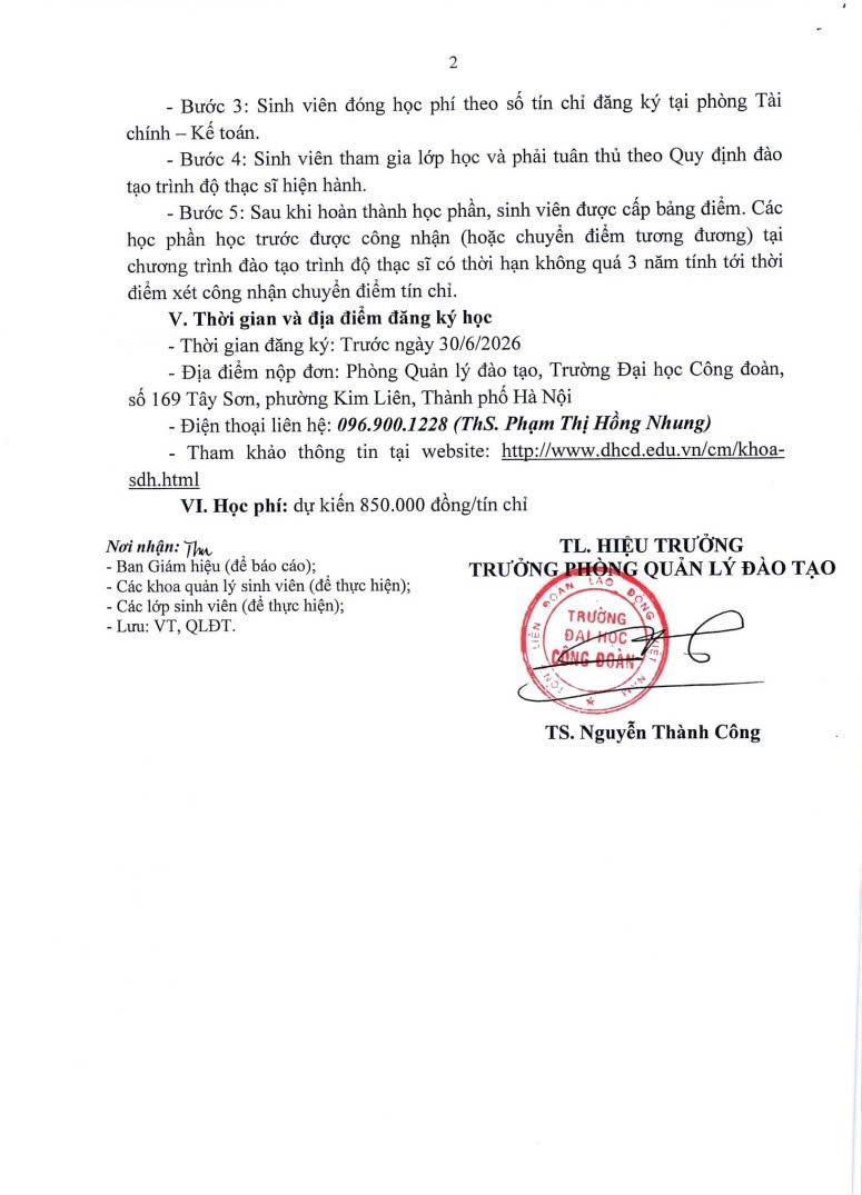 THÔNG BÁO HỌC TRƯỚC HỌC PHẦN THẠC SĨ
