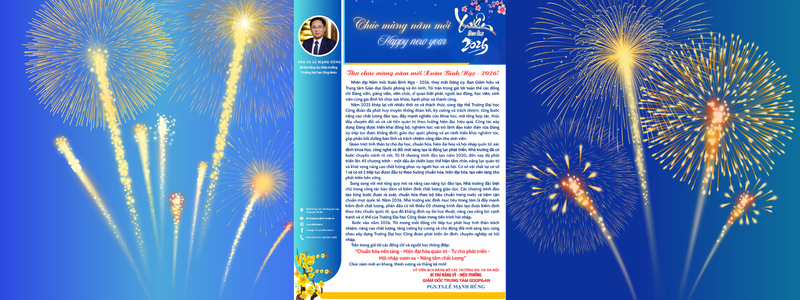 Nhân dịp Năm mới Xuân Bính Ngọ - 2026, thay mặt Đảng ủy, Ban Giám hiệu và Trung tâm Giáo dục Quốc phòng và An ninh, Tôi trân trọng gửi tới toàn thể các đồng chí Đảng viên, giảng viên, viên chức, sĩ quan biệt phái, người lao động, học viên, sinh viên cùng gia đình lời chúc sức khỏe, hạnh phúc và thành công.