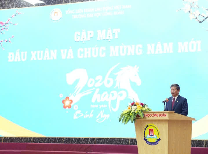 Nhân dịp đầu xuân Bính Ngọ 2026, ngày 23/02/2026 (mùng 7 tháng Giêng năm Bính Ngọ), Trường Đại học Công đoàn vinh dự đón tiếp đồng chí Huỳnh Thanh Xuân - Ủy viên Ban Thường vụ Đảng uỷ , Phó Chủ tịch Tổng Liên đoàn Lao động Việt Nam (Tổng LĐLĐVN) và Lãnh đạo một số đơn vị của Tổng LĐLĐVN đến thăm viên chức, người lao động Nhà trường nhân dịp đầu xuân năm mới.