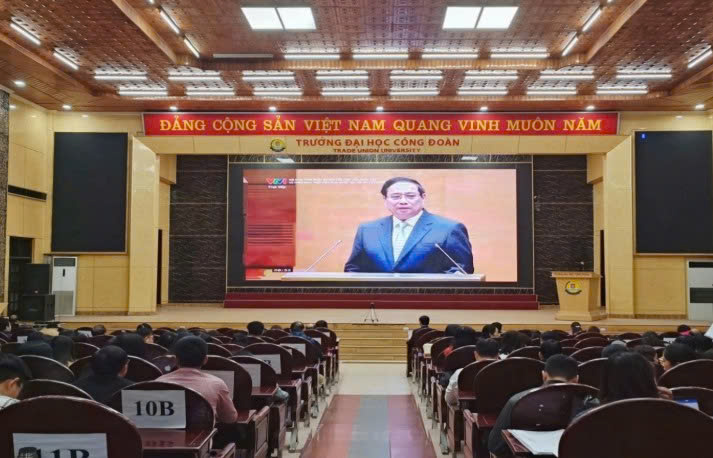 ĐẢNG UỶ TRƯỜNG ĐẠI HỌC CÔNG ĐOÀN TỔ CHỨC ĐIỂM CẦU TIẾP SÓNG HỘI NGHỊ TOÀN QUỐC NGHIÊN CỨU, HỌC TẬP, QUÁN TRIỆT VÀ TRIỂN KHAI THỰC HIỆN NGHỊ QUYẾT ĐẠI HỘI ĐẢNG TOÀN QUỐC LẦN THỨ XIV, NHIỆM KỲ 2025 - 2030
